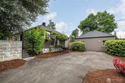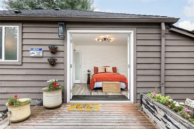 Welcome to a rare dual living estate that combines modern luxury with endless versatility. Located on a secure gated shy quarter acre lot this property is a meticulously reimagined creative sanctuary featuring two separate fully renovated residences. Every inch was transformed in 2022 with premium upgrades including new roofs windows electric panels and high efficiency mini split systems with air conditioning for year round comfort. The primary residence showcases sophisticated design with Italian tile flooring heated bathroom floors and a chef inspired kitchen featuring sleek quartz countertops and a double oven. Elegant French doors lead to a private deck from the main suite which is accented by a stunning custom deco wall. The second detached home is equally impressive with its own private patio and commercial grade flooring ideal for a high end rental or a professional home business. Outside, the expansive newly paved parking area comfortably accommodates eight vehicles all within