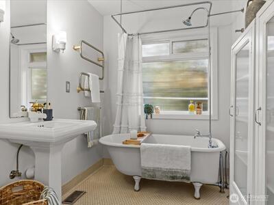 Tucked into a quiet pocket of Highland Park, this inviting home blends tranquility with everyday livability. The airy great room is the heart of the home, where a central skylight pours in natural light, creating an atrium-like ambiance. Rich fir floors and custom built-ins bring warmth, texture, and timeless appeal. Step outside to an expansive covered deck that invites year-round entertaining and effortless indoor-outdoor flow. With thoughtful upgrades including an on-demand water heater, generator, and a newer roof, this home offers both character and peace of mind in one of West Seattleās most beloved neighborhoods.