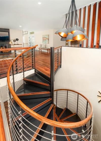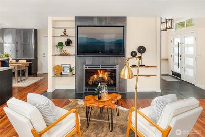 A masterclass in modern luxury, a fully reimagined residence taken down to the studs & rebuilt to today’s highest standards. Originally built in 1963, every detail thoughtfully curated to live like new while maintaining warmth & character. A no-stair entry, expansive front deck, clean architectural lines, and refined finishes create a welcoming first impression. Inside, natural light fills the open-concept layout, anchored by a gas fireplace. The chef’s kitchen features custom concrete countertops, professional-grade ventilation, and a statement island w/ abundant storage. The main level includes a private office with built-ins, a guest retreat, an accessible bath, custom storage, layered lighting, voltaic film windows, & intentional sightlines. A sculptural spiral staircase leads to the private lower level, featuring a luxurious primary suite w/ gas fireplace, and spa-inspired bath with heated floors, soaking tub, dual vanities, and multi-head shower. Remodeled extensively to an