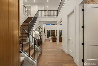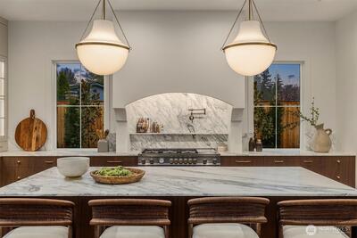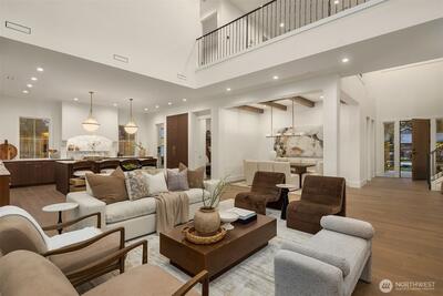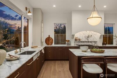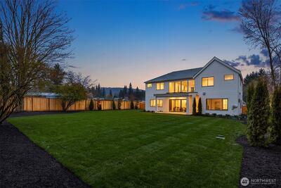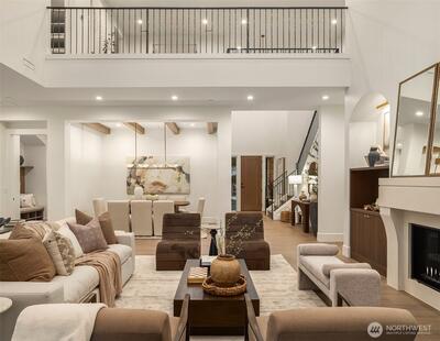 Introducing an exceptional newly constructed residence by renowned builder Baluco Homes, thoughtfully designed to blend refined craftsmanship with the relaxed charm of Fall City living. Ideally located just moments from the heart of downtown Fall City, this stunning home offers walkable access to beloved local amenities including coffee shops, restaurants and the Snoqualmie River. Striking architecture is highlighted by elegant stone and brick exterior, creating timeless curb appeal. Inside, soaring ceilings, expansive windows, and a custom-designed staircase set the tone for a light-filled interior that feels both grand and welcoming. The great room flows seamlessly into a chef’s kitchen featuring custom cabinetry, marble countertops, premium appliances, and oversized island. Warm wood tones, curated lighting, and refined architectural details elevate the home’s sophisticated yet comfortable aesthetic. Sliding doors open to a covered outdoor living area with fireplace, creating a