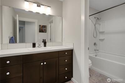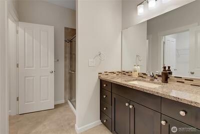 Beautifully upgraded 3,496 sq ft home in Rainier Ridge at Lipoma Firs offering 6 bedrooms (including main floor den/office) and 3.5 baths with a versatile, well-designed layout. Main level features a den/office (optional 6th bedroom) plus a separate first-floor suite with ¾ bath, ADA-accessible shower, and walk-in closet—ideal for multigenerational living. The open-concept main floor includes a spacious great room with gas fireplace and an entertainer’s kitchen featuring a large island, stainless appliances, custom pantry shelving, and upgraded cabinetry with ShelfGenie pull-out shelves and soft-close features. Formal dining room impresses with soaring ~18 ft ceilings. Upstairs, the primary suite offers a generous layout with a full bath, separate soaking tub, dual vanities, and two walk-in closets. Additional bedrooms and a large bonus room provide flexible living space. Extensive upgrades include solar, A/C, upgraded furnace, updated flooring, California Closets, floating shelve