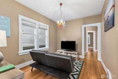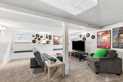 At the North edge of Fremont and the end of Phinney Ridge lays a 5 bed 2 bath Craftsman home ready for its next owner to enjoy its character, charm and big spaces. Surrounded by beautiful neighbors, this is an opportunity to take advantage of the tall ceilings, hardwood floors, period details such as built ins, glass handled doors, an eating nook in the kitchen, a traditional dining room, giant basement with great room and more space to expand. The home features 4 bedrooms on the upper level after an early 1990's remodel added a dormer, and 2 big back bedrooms with peek a boo city view. The main floor has a den, 5th bedroom and full bath. The kitchen is a functional with high ceilings and cabinets, with mud room access to the back yard. The back yard is private with mature plants around it and little garden in the back corner. The home features a shared driveway that leads to the Detached, shared wall garage with a shop for 1 bay and 1 covered parking. The entry porch is surr