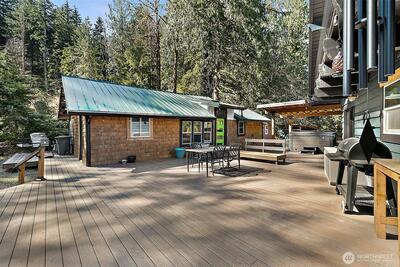 Escape to your own private mountain retreat in North Bend! Nestled on 5 peaceful acres, this chalet-style home offers stunning mountain views and endless opportunity to create your dream lifestyle. The open floor plan is filled with natural light and provides flexible living spaces to fit your needs. Featuring 3 bedrooms and 3 baths, this home blends comfort with potential. Step outside to an expansive deck —perfect for entertaining or relaxing in the hot tub while taking in the serene surroundings. The large shop is ideal for your next creative endeavor, hobbies, or storage for recreational gear. Whether you're looking for a full-time residence or an escape from the everyday, this recreational property offers privacy, space, and opportunity. Bring your vision and make it your own!