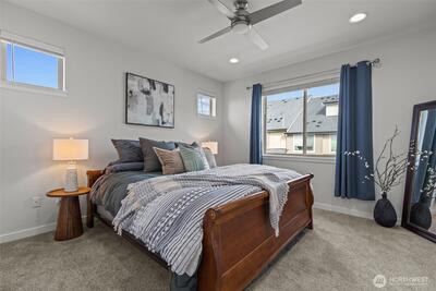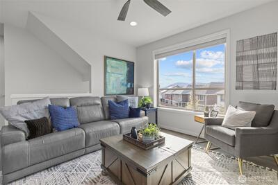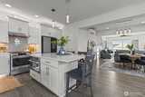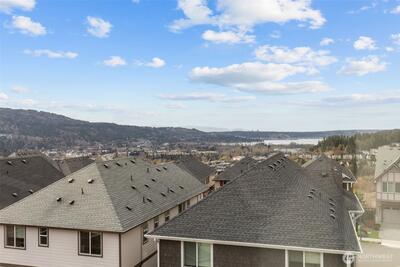 Exceptional townhome in the Westridge community at Issaquah Highlands offering abundant natural light and flexible living across four levels. Open-concept main floor features a gourmet kitchen with quartz counters, stainless appliances, and seamless flow to dining, living, and private deck. Upper level includes spacious primary suite with walk-in closet and two additional bedrooms. Top-floor bonus room opens to a west-facing rooftop deck with sunset views, Olympic Mountains on clear days, and prominent views of Lake Sammamish, along with additional outlooks toward the Cascade Range, Bellevue, and Issaquah, with the added bonus of viewing fireworks on the Fourth of July. Lower level provides private office or guest suite with en-suite bath and patio access. Double wall construction between units offers added sound separation, and fire sprinkler system throughout residence. Side-by-side two-car garage with storage. Convenient access to parks, shopping, dining, and I-90.
