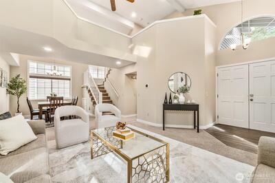 Welcome to the coveted Springbrook neighborhood in Kirkland—most desirable community where homes rarely come to market because owners truly love living here. This East-facing 2-story Single-family home showcases soaring vaulted ceilings & a heartfelt, thoughtfully designed floor plan filled w/ natural light. Big windows & Skylights beautifully illuminate the elegant living & dining spaces, creating a warm and inviting atmosphere. Thoughtfully upgraded throughout ownership, this home features new exterior paint, new blinds, fridge, washer/dryer, custom closet systems, fresh interior paint, updated baseboards, & modern light fixtures. Backyard has been completely transformed with premium paver stonework & a custom-built retaining wall, offering a fully usable, level outdoor space w/ zero maintenance. A perfect home that truly has it all—formal living and dining, a stylish modern kitchen, a spacious family room, and upstairs three generous bedrooms with two full baths, ideally set on