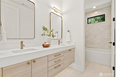 Luxurious beautiful new home by Kirkland's premier local luxury home builder, RD Homes. Located in quiet, highly desirable neighborhood conveniently located to freeway, downtown Kirkland and Bellevue. Just blocks to area shops, restaurants, parks, trails and schools! Modern, elevated level quality, design and finish! Spacious, open flowing floor plan featuring next level chef's kitchen with Sub-Zero/Wolf appliance package, private main level suite and office on entry level. Comfortable high functioning upper level with four bedrooms, open landing area and media room. Stunning designer modern lighting and hardware. Custom, oversized windows throughout offer plenty of natural light. Premium sound system. Ring door bell, security system. Air conditioning, Broan HRV Ventilation. 3 car garage, EV ready with room for storage. Covered patio and private yard with irrigation.