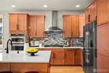 Nestled in highly sought-after Rose Hill, this thoughtfully designed home in Heather’s Ridge offers the perfect blend of comfort, style, and modern convenience. At the heart of the home is the chef’s kitchen, featuring quartz countertops, stainless steel appliances, and an open layout that flows seamlessly into the inviting living room, featuring a cozy gas fireplace. Engineered hardwood flooring runs throughout the home, enhanced by electric under-floor heating for added warmth during PNW winters. In the warmer months, enjoy central A/C indoors or step outside to a level, fully-fenced backyard with a private patio - the perfect spot for summer BBQs and gatherings. The dedicated home office, complete with elegant French doors, provides a quiet and functional work-from-home retreat. The upper level showcases a spacious primary suite with a spa-like 5-piece ensuite bath and walk-in closet, a conveniently located laundry room, plus three additional bedrooms and a full bath. Other thou