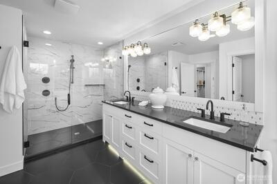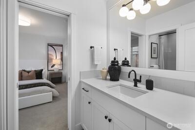 Exceptional new construction in one of Seattle’s most desirable neighborhoods, Denny Blaine. Expertly crafted by Chaffey Building Group, this classic Craftsman home is prominently positioned on a quiet dead-end street in the heart of the neighborhood. The second and final home of the collection; experience curated outdoor spaces that live like a private retreat: dine under cover, pause by the fountain, relax on the front porch, or gather by the double-sided fireplace that warms both the living room & the covered deck. Inside, enduring design meets culinary artistry in the chef’s kitchen where JennAir appliances and a 9’ island are ready to host, plus a main-floor den that offers the perfect work-from-home space. Upstairs, the primary suite features vaulted ceilings and filtered lake views, a generous walk-in closet, and a spa-inspired bath; plus two additional bedrooms separated by a dual-sink full bath and a spacious laundry room. The lower level flexes to meet your needs: as a