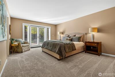 Nestled in Renton’s coveted Stonegate neighborhood, this serene half-acre retreat seamlessly blends space, elegance & comfort. Surrounded by mature landscaping & a fully fenced backyard, it’s your private oasis. Picture yourself unwinding year-round on the expansive ironwood deck with skylights, heaters & a luxurious saltwater hot tub. This 4-bedroom home boasts a versatile layout, anchored by a spacious first floor primary suite with French doors opening to the backyard deck, an attached spa-like bathroom & walk-in closet designed for ultimate convenience. Adjacent to the primary is a flex space, ideal for an office, nursery or cozy den. The main floor features a gas fireplace in the formal living room, an elegant dining room, and an open-concept kitchen with a walk-in pantry & eating nook flowing into the family room with soaring ceilings, a river rock gas fireplace & built-ins. Upstairs, a spacious bonus room offers endless possibilities, while the laundry room provides a