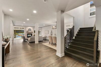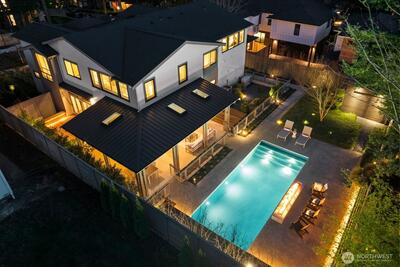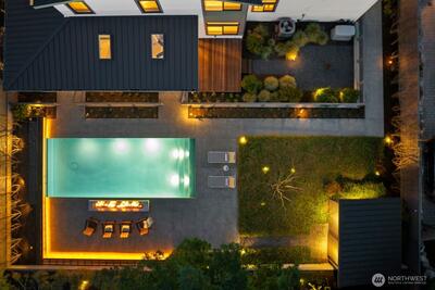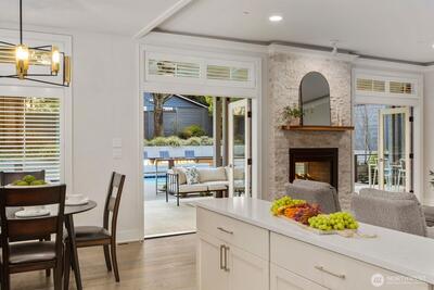 A truly one-of-a-kind Forbes Creek retreat blending Pacific Northwest beauty with effortless California-inspired living. Designed for year-round enjoyment, the backyard transforms into a private retreat in every season. A natural gas heated pool, effortlessly controlled from your phone, can be brought to a soothing 100° in just hours, inviting spontaneous swims even on crisp evenings. Whether lounging poolside or gathering around the linear fire table as the west-facing sky shifts from blue to soft pink, this space delivers comfort, ambiance, and unforgettable moments no matter the season. Entertaining flows seamlessly from stunning interior spaces to a resort-style backyard where no detail is overlooked. Walls of windows and multiple glass French doors create a remarkable indoor-outdoor connection to covered living areas and lush, private grounds. Hardwood floors, plantation shutters, premium Ipe wood hardscapes, and thoughtfully curated finishes elevate the home’s warmth and sophi