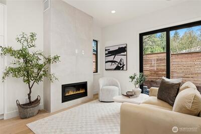 Serene, beautiful new home by Kirkland's premier local luxury home builder, RD Homes. Located in quiet, highly desirable neighborhood conveniently located to freeway, downtown Kirkland and Bellevue. Just blocks to area shops, restaurants, parks, trails and schools! Rarely available attached garage! Modern, elevated level quality, design and finish! Spacious, open flowing floor plan featuring chef's kitchen with Monogram appliance package. Comfortable upper level with two bedrooms and two baths. Stunning designer modern lighting and hardware. Custom, oversized windows throughout offer plenty of natural light. Premium sound system. Ring door bell, security system. Broan HRV Ventilation. Private yard space with irrigation. Garage EV ready, room for storage