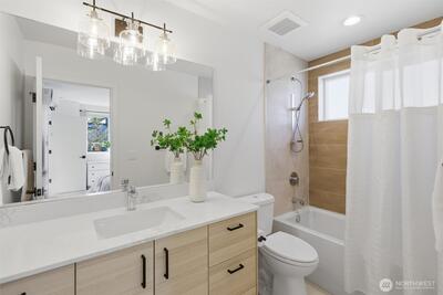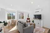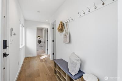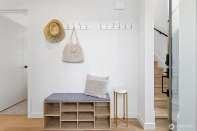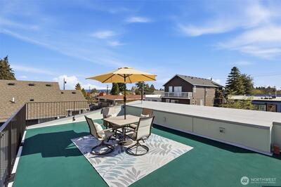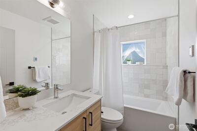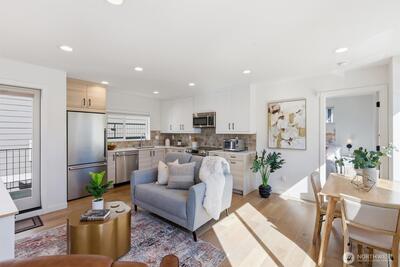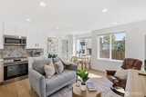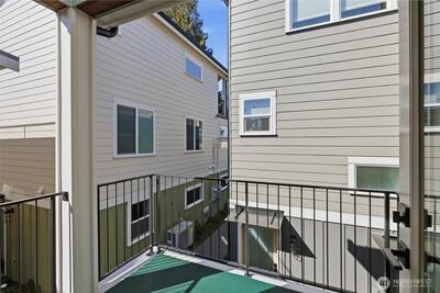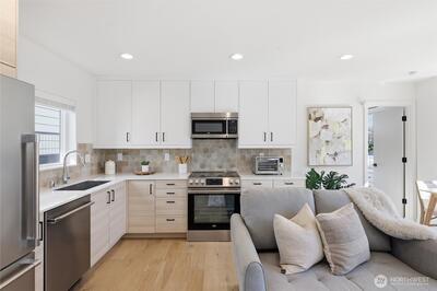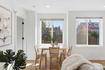 This is it! Nearly new two-level standalone townhome offering a seamless floorplan and contemporary style. Built just two years ago, this modern residence features smart home technology, high-end finishes, and quality systems throughout, including wide plank hardwoods, quartz counters, under cabinet lighting, mini-split A/C, heated tile floors, Hunter Douglas blinds, and artisan metalwork. Thoughtfully designed for comfort and convenience, with two large bedrooms, a spacious laundry room, and a full bathroom on the main level; an ideal primary suite and great room on the second floor, creates excellent separation for a home office, hobbies, or guests. Style meets convenience with a designated off street parking space, quaint yard, EV outlet, and an expansive rooftop deck with mountain and city views. Adventure is right outside your door in Loyal Heights, with easy access to Larsen's Bakery, Cafe Munir, Loyal Heights Playfield, Golden Gardens, and Sunny Hill. Just minutes to the heart o