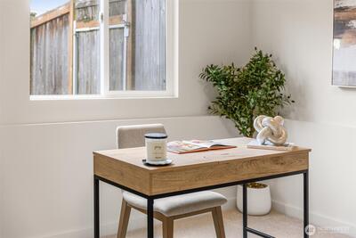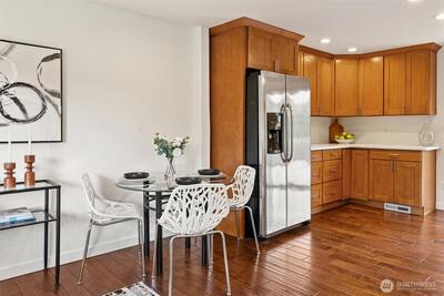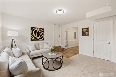 Tucked into a quiet Woodinville neighborhood with easy access to I-405, this home offers a seamless blend of comfort, flexibility, & outdoor living. The backyard stands out as the centerpiece, thoughtfully designed for gathering, entertaining, & enjoying every season. An expansive deck creates the perfect setting for summer hosting with space for grilling & relaxing. The patio & firepit add a warm, inviting atmosphere. Raised garden beds, mature blueberry bushes, & frequent hummingbird visits create a peaceful, natural backdrop. Inside, gleaming hardwood floors, new carpet, & fresh paint create a clean, move-in ready feel. Natural light moves easily through the main living spaces. The large kitchen offers ample counter space, stainless steel appliances, & an easy flow into the living area for everyday comfort & hosting. Morning sun fills the home, while the backyard enjoys great afternoon light. The primary bedroom connects directly to the bathroom, & an additional bedroom completes t