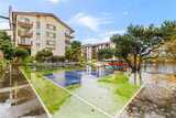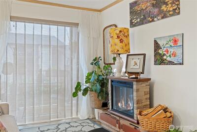Lakefront living at its finest! This desirable interior unit has a private balcony overlooking the courtyard gardens and pool with view of the lake. This complex is one of Seattle's best kept secrets with fully gated access hiding a private beach on Bitter Lake with dock and fishing pier, a tennis court, a huge heated pool with cabana containing event space, kitchenette and changing rooms; and two nicely appointed game/exercise rooms. Nicely remodeled with new appliances and bathroom cabinetry, ceiling fan, a new electric fireplace, and a small in-unit washer dryer. Includes deeded parking space and storage locker on balcony. Enjoy peaceful comfort and the benefits of resort style living in the heart of Seattle :)