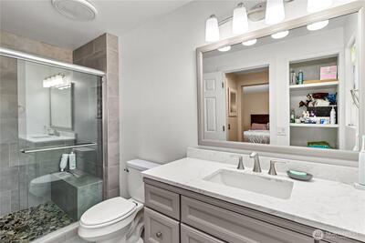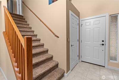 Location, Location, Location! Community waterfront access, community park, authorized trail to schools, near arterial streets, great neighborhood. Four bedrooms upstairs with Full guest bath. One bedroom currently used as office for work-from-home. Master Bedroom with dual closets, nice 3/4 tiled bathroom. 1/2 bath on main. Fenced back yard with dual gates to the street. Covered patio for year round entertaining. Park and playground just seconds away. Secure waterfront park with walking trails on Long Lake