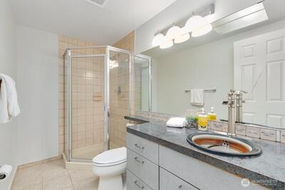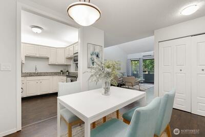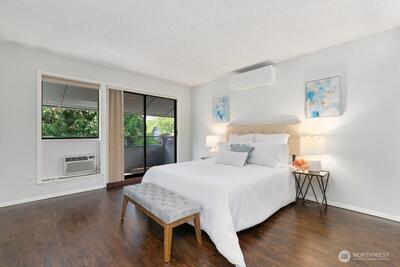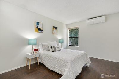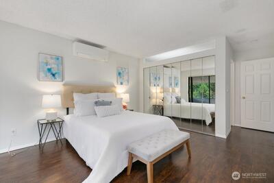 Walk to everything downtown Mercer Island—including shopping, dining, parks, and the upcoming light rail station—from this top-floor, light-filled end unit! Soaring vaulted ceilings and large windows create a bright and open feel throughout. Enjoy a spacious layout with a seamless flow between the living and dining areas, plus balconies off both the living room and primary suite for relaxing outdoor space. The updated ductless air conditioning system ensures year-round comfort. Two generously sized bedrooms, in-unit laundry, and two dedicated parking spaces add convenience to this well-appointed home. A perfect blend of location, comfort, and lifestyle in the heart of Mercer Island!