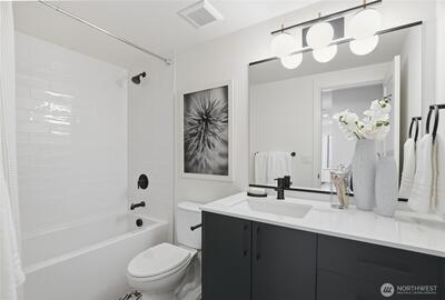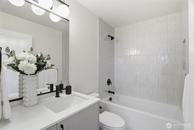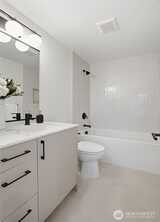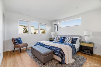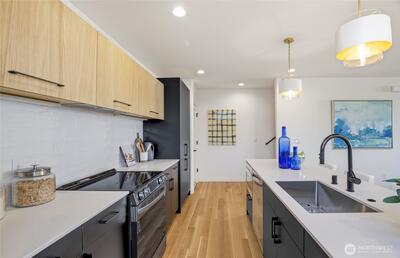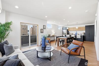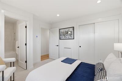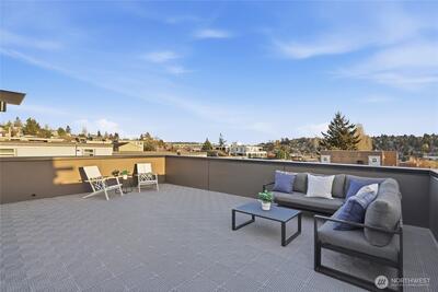 Crisp modern design meets everyday comfort. With a garage! Four brand-new homes from BuildSound in the heart of Fremont, the Center of the Universe, yet tucked in away from the hustle and bustle of city living. Step into a main-floor great room with wide-plank floors and a standout kitchen featuring a custom tile backsplash, quartz counters, modern cabinets, and stainless appliances. The primary suite offers a spacious ensuite bathroom and generous closet upstairs, with two lower-level bedrooms ideal for guests or work from home. Entertain guests and enjoy stunning views from your private roof deck. Walk Score 95 - steps away Fremont’s shops, restaurants, and nightlife. Easy commute to SLU/Downtown Seattle.