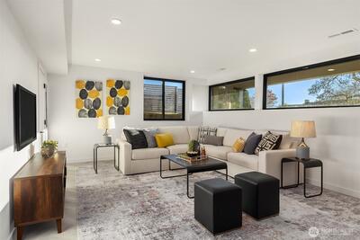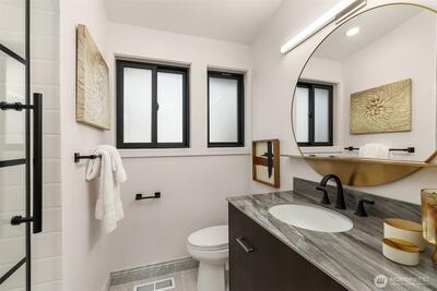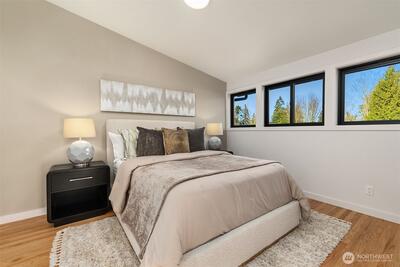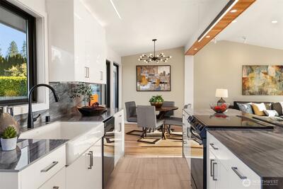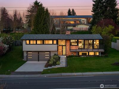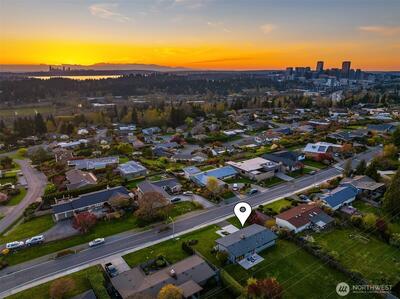 Perched at the top of Woodridge Hill, this fully renovated west-facing home offers sweeping panoramic views of Downtown Bellevue and the Seattle skyline. Rare for the neighborhood, the home blends timeless Woodridge appeal with a bright, open kitchen and great room concept designed for modern living, effortless entertaining, and everyday connection. Large windows draw in natural light and frame the views, creating a living experience that feels both elevated and inviting. With 4 bedrooms, 2.75 baths, and versatile lower-level flex space ideal for guests, a bonus room, home office, or private retreat, the layout offers exceptional flexibility. The expansive backyard backs directly to a school park, adding privacy, openness, and remarkable room to play, gather, and enjoy the outdoors. Just steps to Woodridge Elementary and close to neighborhood pools, Norwood Park, and trails, this is a rare turnkey opportunity in one of Bellevue’s most sought-after neighborhoods with the space, update