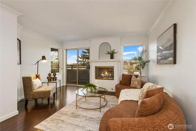 Experience the best of Pacific Northwest living in this cozy, amenity-rich condo featuring sweeping views of Elliott Bay and the Sound. Step out onto your private deck—accessible from both the living room and primary bedroom—and take in stunning sunsets over the water, along with peaceful views of the nearby golf course and the Sound. The deck is even equipped with a projector screen, perfect for outdoor movie nights. Inside, the home offers comfort and convenience with an in-unit washer and dryer, while the building includes an elevator, same-floor storage, and a welcoming community lounge complete with a sauna. Pet lovers will appreciate the pet-friendly environment, and the well-managed HOA adds peace of mind. Ideally located with easy access to downtown, major tech hubs, Whole Foods, and Interbay Golf Course, this condo combines tranquility, connectivity, and everyday convenience—making it a perfect place to call home.