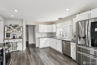 This stunning 3-bedroom, 2,482 sq. ft. home is tucked away in a quiet cul-de-sac and filled with thoughtful updates. The open-concept kitchen shines with modern finishes, complemented by updated bathrooms and new flooring throughout. A spacious living room features a cozy gas fireplace and TV nook, while the primary suite offers a large walk-in closet and spa-like 5-piece bath. Upstairs, a huge bonus room provides endless flexibility. A convenient main-floor laundry room just off the garage adds everyday ease. Outside, enjoy the hot tub and a backyard complete with a playhouse or shed. A 2-car garage adds convenience, plus the home is close to JBLM, schools, golf, parks, and amenities.