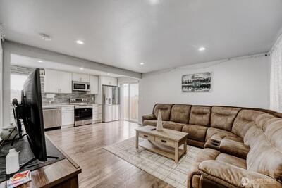 Welcome to this beautifully remodeled home featuring an open and inviting layout filled with natural light. The updated kitchen shines with granite countertops and LG stainless steel appliances, complemented by newer flooring throughout. This home offers four spacious bedrooms and 1.75 bathrooms with heated floors for added comfort. Enjoy a low-maintenance yard with room for RV parking. Conveniently located near Hwy 167, shopping, and schools—this is one you don’t want to miss!