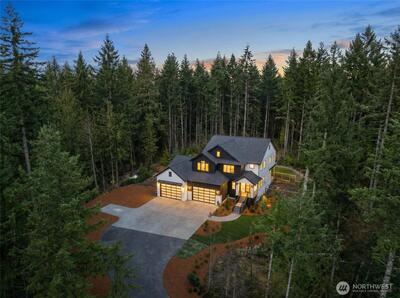 Discover the ultimate in Pacific Northwest luxury in Ravensdale! This magnificent estate is situated on 5 sun-drenched spacious acres offering a rare sense of total freedom with no HOA. The grounds provide a serene, wooded backdrop for a lifestyle of independence, whether you dream of a hobby farm, a massive shop, or simply absolute privacy. Inside, the home defines sophistication. The gorgeous chef’s kitchen is a showpiece of design and function, including a massive walk-in pantry. For the connoisseur, a dedicated wine storage area ensures your collection is showcased in style. This thoughtful open floor plan showcases a huge great room and is uniquely designed for multi-generational living or ultimate guest comfort, featuring two primary suites: one located on the main floor & a second retreat on level two. Entertainment options abound in the huge upper bonus room, which includes its own 3/4 bath, making it an ideal media center, gym, or guest wing. Transition effortlessly to outdo