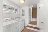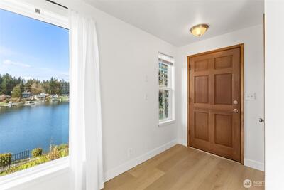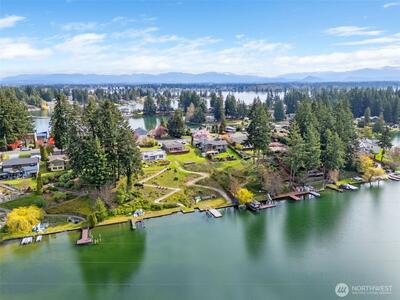 Western exposure waterfront home on Deer Island in Lake Tapps offering incredible views, natural light and some of the warmest waterfront living in the area! This charming 2-bedroom, 1-bath home blends classic character with thoughtful updates, featuring original hardwood floors in the bedrooms and an updated bathroom. Enjoy new laminate flooring throughout the living room, kitchen, and spacious family room, along with fresh interior paint and newer windows that enhance comfort and efficiency. The inviting living room showcases an electric fireplace, creating a cozy atmosphere year-round. The home also offers a generously sized updated bathroom and an oversized laundry room for added convenience. Step outside to a large covered patio—perfect for entertaining or relaxing while taking in the peaceful lakefront setting. Situated on a quiet dead-end road, this property provides privacy while remaining close to everyday amenities. Conveniently located near Sumner and Auburn train stations