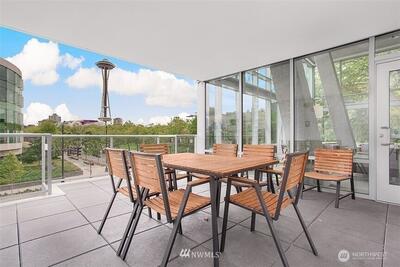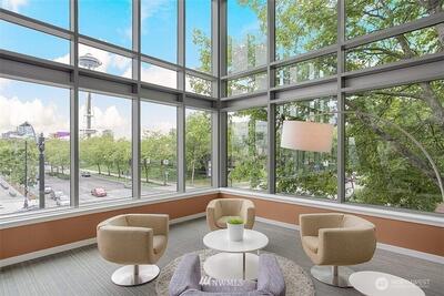 Welcome to Elevated Urban Living at the Lumen. Seattle's premier lower Queen Anne address, where contemporary design meets unparalleled convenience in one of the city's most dynamic neighborhoods.Your Gateway to Everything Seattle. Step outside and find yourself at the epicenter of innovation and culture. The Gates Foundation, Space Needle, Seattle Center, and South Lake Union's thriving tech corridor are at your doorstep, placing you minutes from Seattle's most sought-after destinations.This exceptional top-floor residence showcases The Lumen's signature modern aesthetic— Architectural Excellence with a striking fusion of concrete, glass, and light where sweeping 11-12' ceilings create an expansive atmosphere and floor-to-ceiling windows frame stunning east city views. One of only two units featuring an oversized 17' balcony, perfect for morning coffee or evening entertaining against Seattle's glittering skyline. Premium Investment or Resort-Style Living - Currently generating $2,21