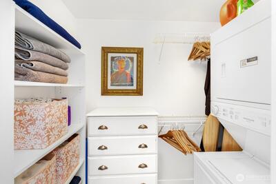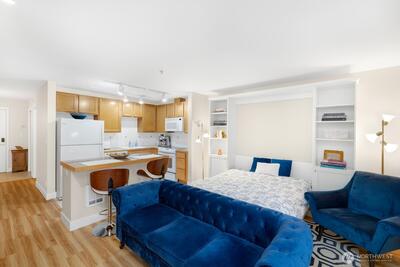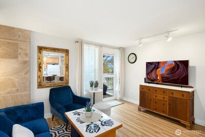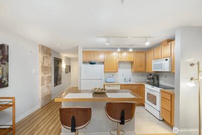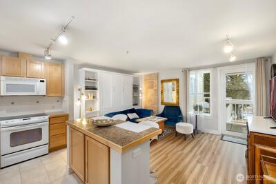 Welcome to Studio 104 at the Blakeley Commons. A wonderful pied-a-terre in Seattle. Walk score of 91, bike score 99—super location on the Burke Gilman trail. Step out your door for a walk, bike ride, skate, run or walk. Spacious studio has an open functional layout with hall entry, full SS kitchen, living space with pull down murphy bed, full bath, W/D in the walk-in closet with plenty of storage. Eat al fresco on the patio or enjoy planting and/or a garden as you watch the activity on the BG trail. Steps to U-Village with wonderful restaurants, shopping, Husky Stadium, & Light rail. Mins to UW & Children's. Zoka coffee in your courtyard. Amenities on floor 1 include: spa, gym, club room w/deck, TV, wifi, full kitchen & bath + guest suites and secure garage parking. Great Investment in the active U-Village community. No rental cap. Convenient storage unit down the hall.