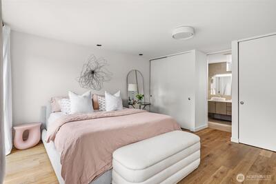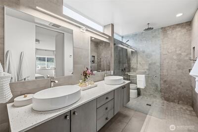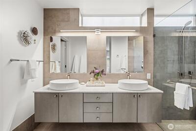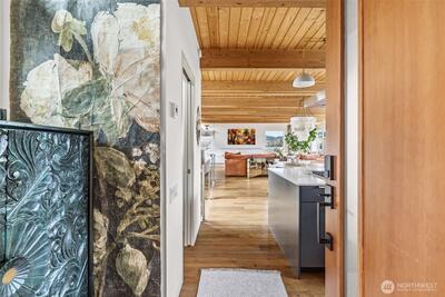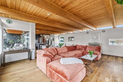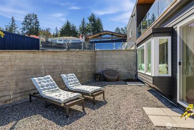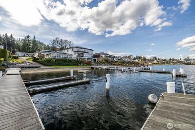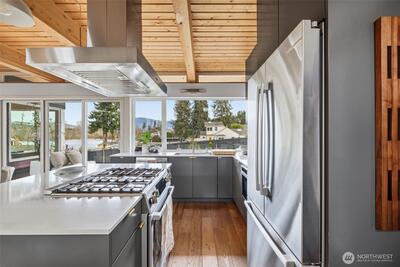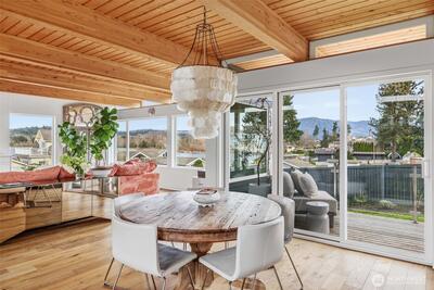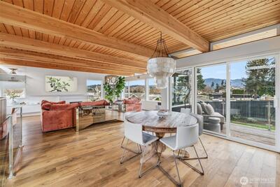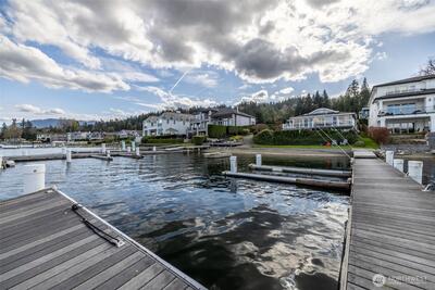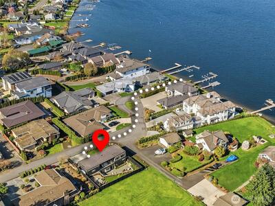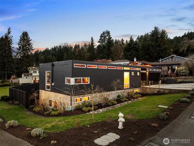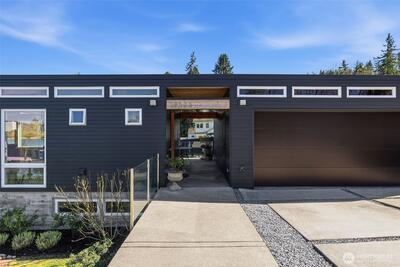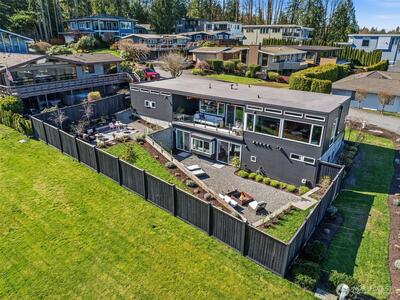 Welcome to Sammamish View Retreat, a serene, light-filled modern home overlooking Lake Sammamish with shared beach and moorage! Expansive picture windows and walls of glass capture breathtaking water and mountain views while filling the home with natural light year-round, creating a warm, uplifting atmosphere. Designed with a stunning great room layout, the home offers open, flowing living with clean lines, warm wood accents, and seamless indoor-outdoor connection. A large glass door opens to a covered view deck—perfect for enjoying morning sunrises, evening sunsets, and peaceful moments surrounded by nature. The thoughtfully designed layout lives larger than its footprint, with private bedroom spaces and additional living areas that open directly to beautifully landscaped outdoor settings. Multiple patios and a fire pit create inviting spaces to relax and unwind. Extensive, thoughtfully curated landscaping. This home truly lives like a retreat—offering the feel of a vacation getaw