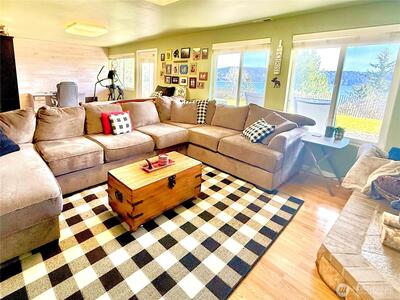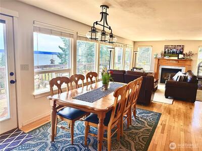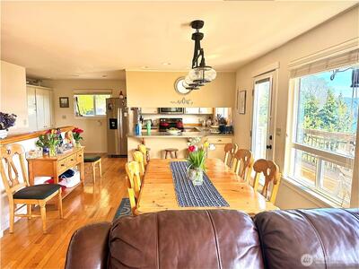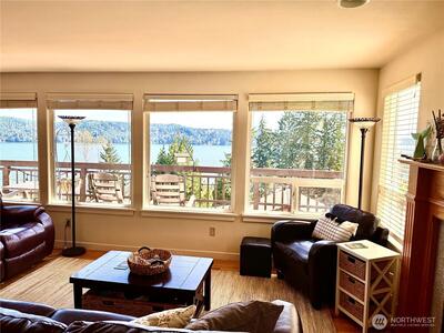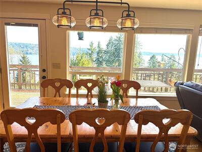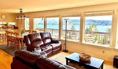 Experience stunning, unobstructed views of Hood Canal from this ideally situated Hoodsport home, offering some of the area's most spectacular scenery and wildlife viewing. Bright and inviting, the home features hardwood floors and an open-concept layout with spacious living and dining areas, all perfectly oriented to capture the dramatic views—ideal for gatherings and entertaining. Just a short walk to downtown shops, dining, and the waterfront with beach access, this location blends convenience with natural beauty. Start your mornings with coffee on the expansive deck, soaking in the peaceful surroundings. Centrally located within easy driving distance of Olympia, Shelton, Lake Cushman, and Olympic National Forest, outdoor recreation is always within reach—from hiking and boating to endless adventures. Whether you're looking for a tranquil full-time residence, a weekend escape, or a strong Airbnb or vacation rental opportunity, this home delivers. Furniture is negotiable, add