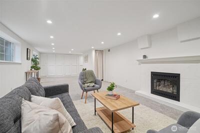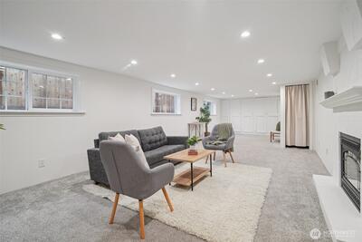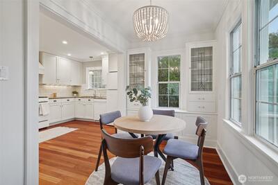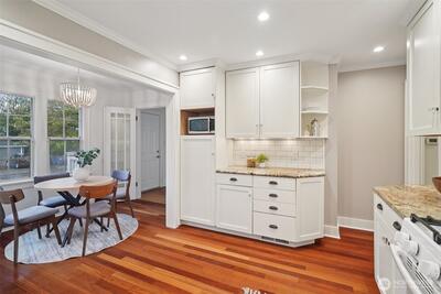 Classic 1923 Craftsman refreshed with thoughtful updates while maintaining its original character. Main floor features a primary bedroom and an updated bathroom (2018) with heated floors. Exceptionally spacious kitchen offers generous room to cook and gather, complete with granite counters and cherry wood flooring. Newly refinished hardwood floors run throughout, adding a clean, cohesive feel. Lower level includes a generous family room with second gas fireplace, along with an additional bedroom and full bathroom—ideal for guests or flexible living. Conveniently located with easy access to transit and downtown Seattle.