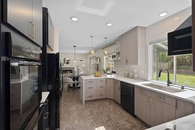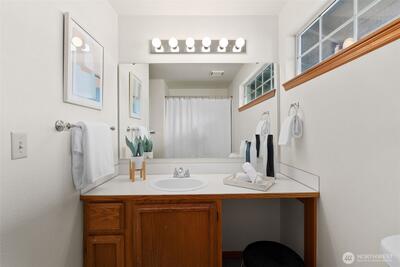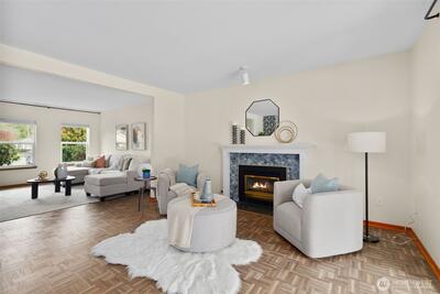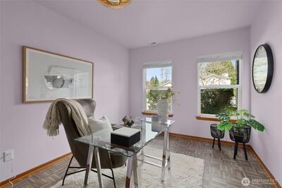 You'll love this Fircrest home in the coveted University Place School District! Situated on a private cul-de-sac, this contemporary home, built in 1990, has been lovingly updated. This includes very recent replacement of most front windows, which adds to the curb appeal of this Colonial-influenced home with charming masonry accents. The completely level property features a fully-fenced backyard with ample privacy provided by a beautiful living wall of arborvitae. Play yard games in this sizeable green space while you BBQ under the covered back patio. Inside, you enjoy the ultra-durable parquet LVP flooring throughout the main level, and the recently updated kitchen with new cabinetry, slab countertops, and high quality appliances. The main level offers an ideal flow between rooms with an open-concept kitchen-dining-living area and a spacious formal living room at the front of the house. And, the main level office provides the perfect space to work from home or use as a flexible area fo