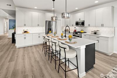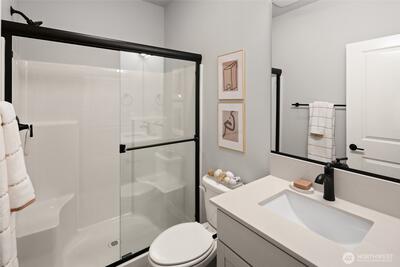 Conner Homes presents the Falcon - A thoughtfully designed multigenerational floor plan offering exceptional flexibility. Main level guest suite w/separate entry, washer & dryer hookups & attached 3/4 Bath w/kitchenette including sink, microwave/convection oven & sink. The main living area offers a perfect office alcove w/windows for a light & bright work area. In the heart of the home you will be greeted by soaring 12 ft ceilings & floor to ceiling tile linear electric fireplace. Kitchen w/white shaker style cabinets w/dark accent island. Quartz Counters w/full height tile backsplash & 5 Burner gas range w/ large single bowl undermount farm sink. Large walk-in pantry w/shelving & outlet + under cabinet lighting. Upstairs offers a lrg loft w/the primary on one side & addt'l bdrms on the other. Primary suite offers vaulting ceilings, walk-in closet & 5 PC bath w/tile floors & free standing soaking tub. Addt'l 2 bedrooms & full bath & laundry room w/ample storage. Fully fenced & professi