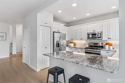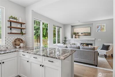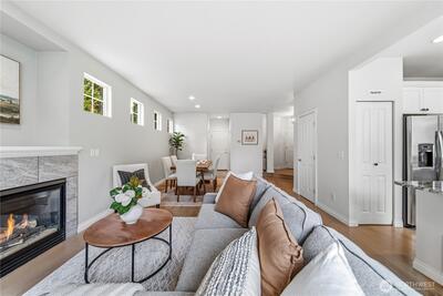 Beautifully updated townhome in a secure gated community, just a short walk to vibrant downtown Issaquah. Offering 3 bedrooms, 2.25 bathrooms, and 1,545 square feet, this home blends comfort, function, and style. The main level features spacious, light-filled living and dining areas with hardwood floors, creating a warm and inviting place to gather. The kitchen is tastefully updated with granite countertops and stainless steel appliances. Upstairs, the flexible loft provides the perfect space for a home office, playroom, or second living area. The primary suite is a true retreat, complete with an en suite bathroom featuring a tiled walk-in shower, double vanity, and granite countertops. Two more spacious bedrooms provide flexibility for guests or everyday living. The additional bathrooms include tile floors and granite for a clean, elevated feel. Step outside to a fully fenced, low-maintenance yard with artificial turf and a paver patio—ideal for relaxing or entertaining without the