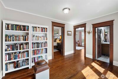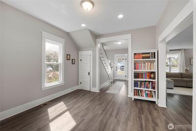 Step into timeless charm with this beautiful 1914 Craftsman home in the heart of Sumner. With 1,736 square feet, this 3-bedroom, 1.75-bath home sits on a generous 12,320 sq. ft. lot and blends classic character with thoughtful modern updates. A large covered porch welcomes you in with soaring ceilings and elegant French doors that open to a spacious living/dining room. The large kitchen includes quartz counters, eating bar and rich espresso cabinetry. A versatile finished room on the main level makes an ideal library, office, or creative space, while the full bath with a clawfoot tub adds a touch of vintage charm. Upstairs, you’ll find original woodwork, built-ins, and hardwoods that showcase the home’s historic beauty. Three spacious bedrooms are complemented by an updated ¾ bath. Outdoors, enjoy a covered back porch overlooking the fully fenced yard with plenty of space for gardening and entertaining. The 14x26 attached shop offers flexibility—perfect for a potential ADU, stud