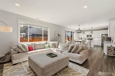 This stunning 5-bedroom, 3.5-bathroom home boasts 3,100 sq. ft. of pristine living space designed for the modern lifestyle. The open-concept floor plan features a chef-inspired kitchen and spacious living areas that flow seamlessly into your private outdoor retreat. Forget the lawnmower—the backyard is a year-round oasis featuring professional-grade all-weather turf, perfect for pets, play, and entertaining without the mud. Plenty of space for all with a main floor office or den connected to a bedroom with ensuite bath, and an upstairs bonus room. Live the ultimate PNW lifestyle in Washington’s top master-planned community. Step out your front door to explore 40+ miles of trails or walk down to The Post for your morning coffee. Close proximity to award-winning Sumner-Bonney Lake Schools. From the high-end finishes inside to the mud-free turf outside, this home offers the perfect balance of adventure and convenience. Experience the best of Bonney Lake living—schedule your tour tod