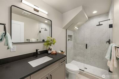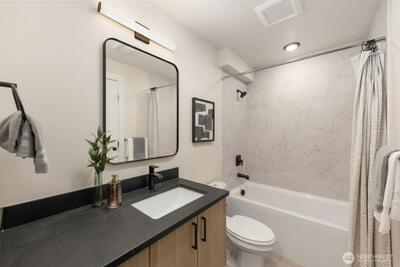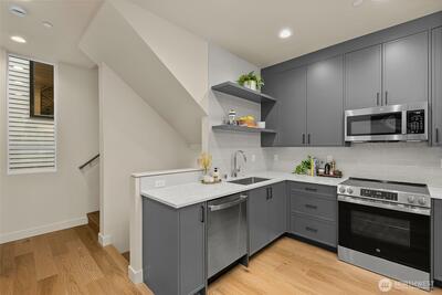 Builder rates starting as low as 1.99% Welcome to a vibrant retail neighborhood. This collection offers the perfect blend of a serene residential neighborhood with all the conveniences of top-notch dining, shopping, and entertainment just outside your doorstep. Guest living on the entry floor with full bed & bath-opens into an L-shaped kitchen, seamlessly connected to a stunning living and dining space flooded with natural light. Above that, the primary suite encompasses an entire level for maximum privacy, including a dual vanity bath and a pass-through walk-in closet. All this coupled w/ a roof deck with beautiful views of the sound (get ready for Sea Fair!). All this + a 90 walkscore! This isn't just a new home, it's a lifestyle upgrade.