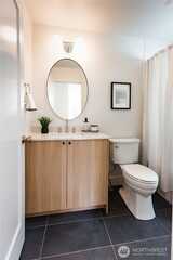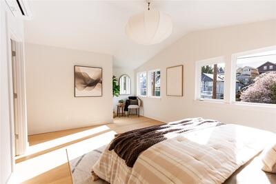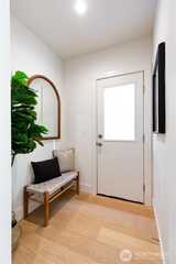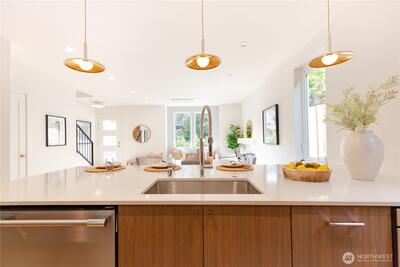 Welcome to this community of three newly built modern homes in Seattle’s vibrant Central Area, crafted by Bungalow Building. Thoughtfully designed with contemporary living in mind, each home features an open-concept floor plan, premium finishes, and dedicated off-street EV-capable parking. This three-story, 1,651 sq ft residence offers a bright and inviting main level with a spacious living and dining area, a chef’s kitchen with ample custom Bellmont cabinetry, quartz countertops, stainless steel appliances/induction range, powder bath, and a convenient mudroom off the kitchen with an additional exterior door. Upstairs, the second level includes two well-appointed bedrooms, a full bathroom, and a laundry closet for added convenience. The top floor is a true retreat, featuring a luxurious primary suite with a spa-inspired bath, huge walk-in closet system, vaulted ceilings, and a versatile flex space—perfect for a home office, nursery, or reading lounge. High-end details throughout