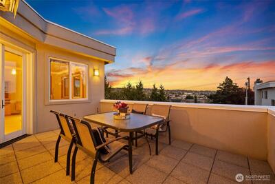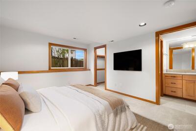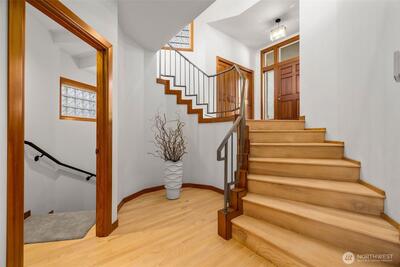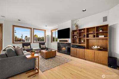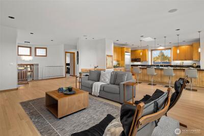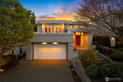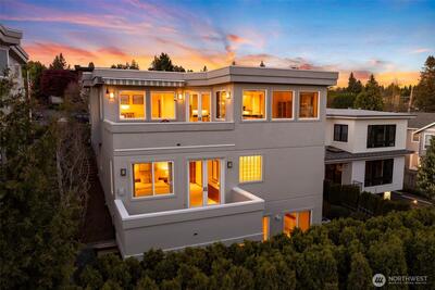 Set just above charming downtown Kirkland, this 6 bedroom Northwest Contemporary offers a sense of ease from the moment you arrive, with soft natural light, clean lines, and glimpses of Mt. Rainier, the Bellevue skyline, and surrounding greenery. Life unfolds naturally on the main level, where rich hardwood floors lead you through open yet defined spaces designed for gathering and day to day living. The kitchen becomes the natural place to linger, anchored by alder cabinetry and generous workspace, with a thoughtful connection to both dining and living areas. Whether hosting friends or enjoying a quiet evening, the flow feels intuitive, extending effortlessly to the balcony where sweeping views create a memorable backdrop. Just beyond, additional living spaces offer flexibility, making it easy to shift between work and connection throughout the day. The main level primary suite is set apart, offering a quieter place to unwind, with a spa-like bath that encourages a slower pace. Three a