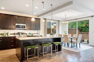 Well maintained 3 bedrooms +Den+ loft +2.5 bath home! Large covered front porch, laminate wood flooring, slab granite counters, Whirpool gold appliance w/gas range, 42 inch upper cabinets and 9ft ceilings on main. Master suite with huge walk-in closet and 5 piece master bath w/ marble counters, large laundry room, 2 big bedrooms, 2nd bath w/marble counters and cozy loft. Air condition. Home was model home in 2015 and included many additional features. New grasses of front and back yard. Walking distance to Green River college.