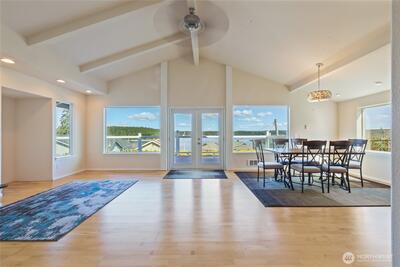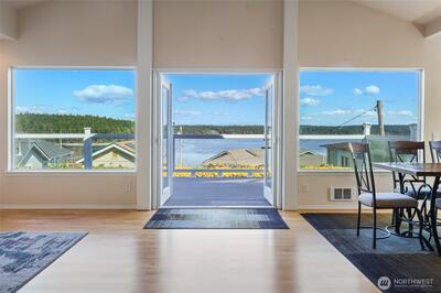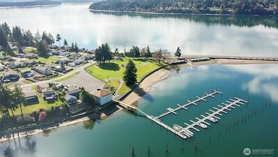 Beautiful, panoramic views of Puget Sound, Mt. Rainier, Olympic Mountains, Hope and Squaxin Islands. You'll have something new to see every day: sunrises, rainbows, barges, sailboats and more. Beautifully updated home with vaulted ceilings, cozy gas fireplace. Living/dining area with French doors to the composite deck and expansive views. Large kitchen with lots of counter space and storage. Primary suite with access to back yard, lots of storage, 3/4 bath and a utility room. Second bedroom with adjacent 3/4 bath. Small storage shed. Enjoy all of the wonderful amenities that Carlyon Beach has to offer: private beach and park, boat launch, boat slips (with lease), clubhouse, playground, dog park and kayak storage. Everything you would want to truly enjoy living on Puget Sound.