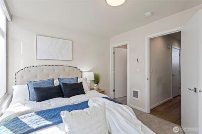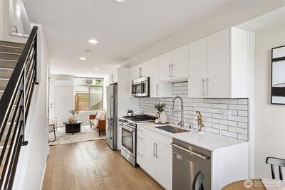 Like new high-quality townhouse community featuring modern, European-inspired architecture. The home offers a well-sized kitchen that flows into a warm and inviting living space. On the second floor, you'll find a bright bedroom filled with natural light, along with a laundry room and a full bathroom conveniently located down the hall. The third floor includes a perfect work-from-home setup, complete with a full bathroom and walk-in closet. Quality finishes include quartz countertops, stainless steel appliances, and gas cooking. Double-insulated windows provide added peace and comfort, while mini-split systems are installed throughout the home. Enjoy a rooftop deck with scenic views, all in a prime location close to transit, schools, restaurants, and shopping.