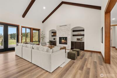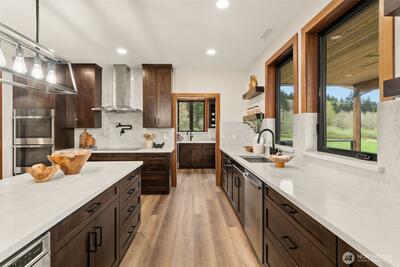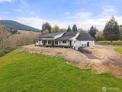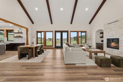 Discover the pinnacle of modern luxury and timeless PNW living. This breathtaking brand-new custom home delivers 3,219± sq. ft. of thoughtfully designed, light-filled living space on an expansive 37.8± acre private estate. Every room is framed by sweeping territorial views of rolling hills, lush meadows, verdant forests, & a serene creek that meanders gracefully through the property. Vaulted ceilings create a dramatic sense of openness, while the seamless open-concept design unites the great room, dining area, & chef-inspired kitchen—perfect for effortless entertaining and everyday life. High-end finishes, premium appliances, & custom cabinetry elevate every detail. Each bedroom is accompanied with an en suite bath. A spacious butler’s pantry adds both convenience and refined luxury for hosting gatherings large or small. Step outside to the oversized covered back deck, where you can unwind while soaking in panoramic sunsets, listening to the gentle sounds of nature, & watching th