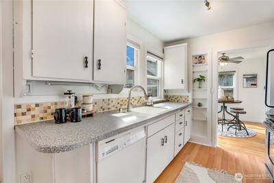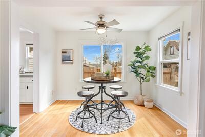 Charming and cozy, this move-in ready home blends comfort and convenience in Tacoma’s vibrant 6th Ave district. Fresh interior paint and fir floors set a warm tone, while the light-filled living room with a gas stove creates an inviting place to unwind. A formal dining room flows into the kitchen with generous storage and prep space. The primary bedroom features a walk-in closet, while the second bedroom flexes as a guest room or home office. A utility room, full bath, and abundant storage add everyday ease. Outside, the fully fenced backyard with deck and garden space creates a private outdoor retreat. Stroll to Tacoma’s beloved restaurants, coffee shops, bars, and boutiques, with Proctor and the University of Puget Sound just blocks away.