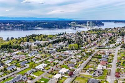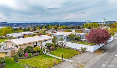 Second time on the market in 73 years. Views, views, and more views! Here is your opportunity to own a home on the West Slope of Tacoma. They don't come along very often. Imagine waking up to the sun hitting your view of the Olympic mountains, the salt waters of the Puget Sound, and all the islands visible from the West Slope. During the day enjoy the updated Trex deck with glass panels and watch planes take off from the Tacoma Narrows Airport, boats on the Sound, and amazing sunsets each night with the Narrows Bridges as your backdrop. Well cared for and fully remodeled home with custom kitchen built by local "high end" cabinet maker. Beautiful cabinetry, granite counter tops, and the layout designed to maximize your view. Heated floors in kitchen and bathrooms for wonderful radiant heat in the winter months. Custom trim work throughout the whole house with solid hardwood doors. Large, trim-wrapped, "low e-glass" windows frame the beautiful views. Top-down bottom-up shades. The entire