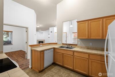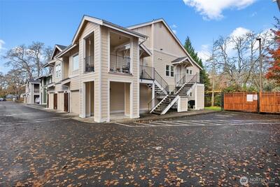 Welcome to this beautifully maintained 3-bedroom, 2-bath condo in the gated Custer Oaks community! This home offers an open-concept layout with vaulted ceilings, a cozy fireplace, and great natural light throughout. Step out onto your private, covered porch—perfect for year-round enjoyment. The spacious primary suite features a walk-in closet and a 5-piece ensuite with a soaking tub and oversized shower. The second bedroom is generously sized, while the third bedroom offers flexibility for guests, a home office, or both. The kitchen is functional and well-designed with a dedicated laundry and pantry area. Enjoy the convenience of a deep one-car garage with ample space for storage. Ideally located near shopping, dining, coffee shops, and with an easy commute to JBLM—this is low-maintenance living at its best!