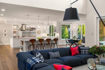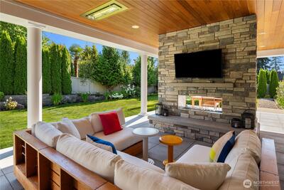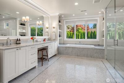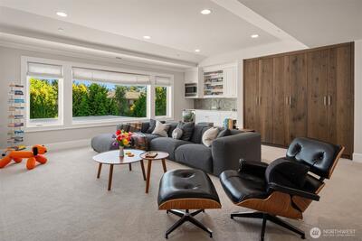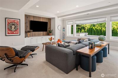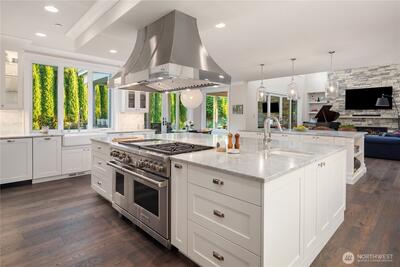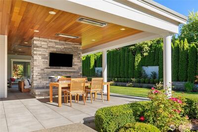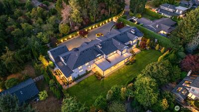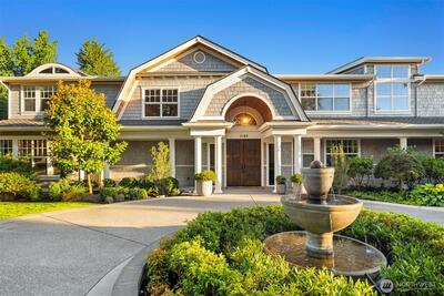 Hamptons-style estate on a sunny, level 29K+ SF lot in coveted Clyde Hill. Timeless elegance meets modern luxury with a sweeping staircase entry, great room, grand formal dining. Chef’s kitchen features a 12’ island, pro-grade appliances, and prep kitchen. Ample living space with 6 bedroom suites plus den. Private-entry GenSuite with full kitchen, living, bedroom, and bath. Enjoy year-round indoor-outdoor entertaining in the covered “outdoor living room” complete with heating, fireplace, TV, and kitchen. Indoor basketball court. Gated entry, circular drive with fountain, 5-car garage, and parking for 6-8 more. Surrounded by lush gardens and lawns for total privacy. Minutes to downtown Bellevue.