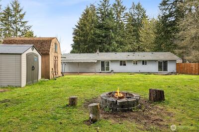 Welcome to this charming rambler located on a spacious .3-acre lot in The Meadows neighborhood. This home boasts laminate flooring throughout. The inviting living room features a cozy wood-burning fireplace and a large window that provides an abundance of natural light. The updated kitchen is equipped with stainless steel appliances, including a double oven, a stylish tile backsplash, and painted cabinets. The primary bedroom offers a closet with custom built-ins and a convenient 3/4 bathroom. Two additional guest rooms provide ample space for guests or a home office, and are complemented by a full guest bathroom. Enjoy the added convenience of a washer and dryer that are included with the home. The extra-large 2-car garage is a true standout, featuring shelves and a workbench for all your storage and hobby needs. Large, fully fenced backyard that includes a firepit, gazebo, shed, garden beds, and a covered patio area – perfect for year-round enjoyment. Additionally, you'll find RV p