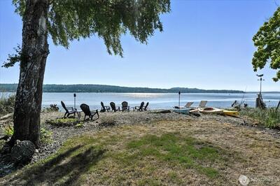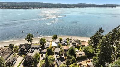 Experience the wonder of this Pt. Fosdick Mid-Century Modern 2-story charmer located on 48 feet of no-bank waterfront. This well-loved home offers iconic views of Hales Pass, the Olympic Mountains, and Chambers Bay. Here by the water, every day feels like a getaway. Bask in the glow of mesmerizing sunsets and cast your eyes on marine traffic and abundant wildlife. Adventure awaits outside your back door, where paddle boarding, kayaking, or beachcombing for treasures is just steps from your private sandy beach. Gathering with friends and loved ones is easy for a weekend or full-time living. Enjoy generous, flexible spaces. The main floor offers a spacious living room with a woodburning fireplace, dining room, and open kitchen. Two bedrooms and a flexible spare non-conforming bedroom and two three-quarter baths complete the main level. Replenish your spirit upstairs in the private primary bedroom with walkout deck. A third bedroom, office, and 3/4 bath complete the second level. Ample st